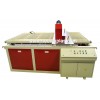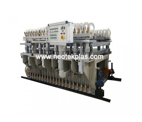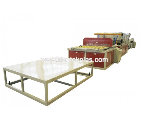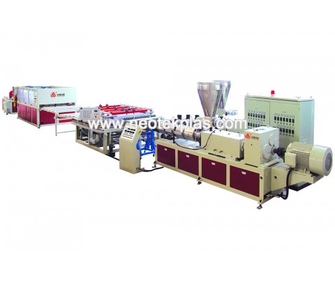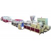 木塑發泡板擠出生產線的優勢在于能大大降低設備成本和配方成本(和真結皮發泡設備相比),產品質量和各方面參數都接近或優于真結皮發泡板(1.22m制品寬,5~20mm厚,密度~0.5g/cm3,表面強度:50~75洛氏硬度),同時制品表面可經過燙印,印刷或貼膜,獲得不同樣式和圖案,此外在有些需要折邊的應用場合,經過熱彎曲處理可以達到應用要求。 設備組成:由擠出機,分配器,模具,定型模板,冷卻架,牽引機,切割機,堆料臺組成,設備精度高,操作方便。